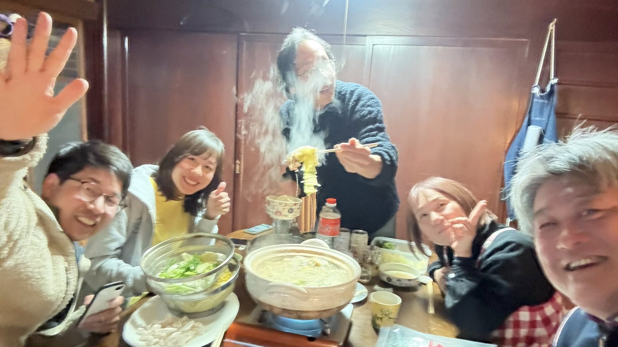 本日(2月5日)、葛川地域はまだぢ雪の中です‼️そんな日は、仲間とのイノシシ鍋は最高です❣️美味しい❣️ホットできる時間、地元のリーダーと、葛川に移住したNPOのメンバーたちで、美味しい鍋を味わえる幸せに感謝しかありません❣️