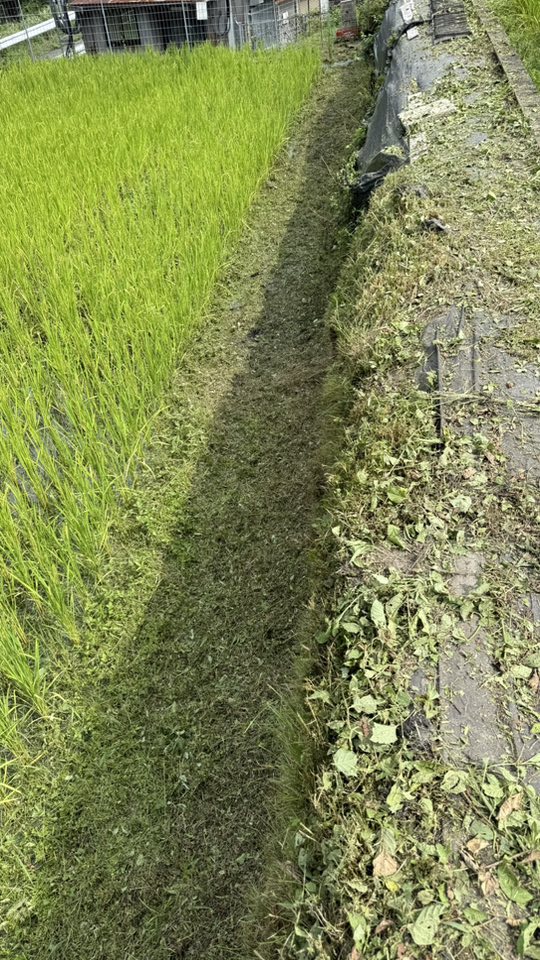 本日(8月23日)朝5時30分集合‼️田んぼの草刈りたっぷり4時間❣️それでも暑くなる前の10時に終了❣️農薬は使わないので、カメムシ対策は巣になる草刈りを本日敢行❣️
