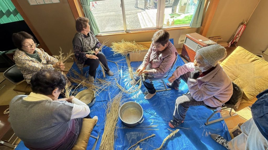 本日は、私も参加して、ワラをたたき、お正月の飾りの下準備❣️